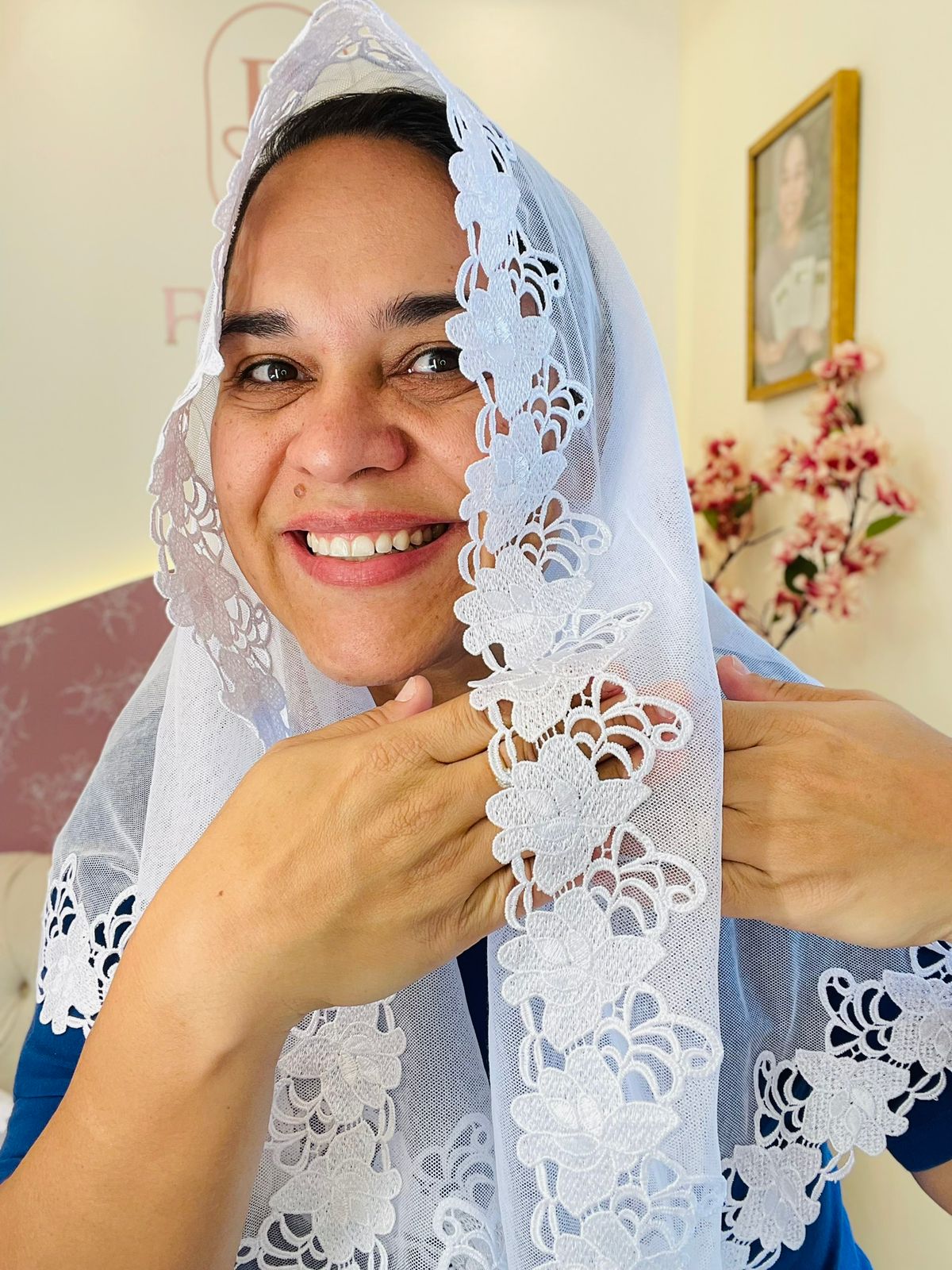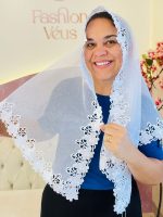 Expresse sua fé com delicadeza e propósito usando o Véu Melissa da Fashion Véus. Confeccionado com materiais de alta qualidade, este véu combina suavidade, caimento perfeito e um design exclusivo. Ideal para momentos de oração, cultos ou uso diário, ele traz um toque de originalidade ao seu visual cristão. A renda foi toda refilada pelo lado avesso dando um charme ao véu e também mostrando a delicadeza do modelo.