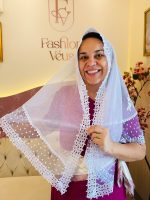 Expresse sua fé com delicadeza e propósito usando o Véu Melanie da Fashion Véus. Confeccionado com materiais de alta qualidade, este véu combina suavidade, caimento perfeito e um design exclusivo. Ideal para momentos de oração, cultos ou uso diário, ele traz um toque de originalidade ao seu visual cristão. O tule francês traz toda a elegância necessária para deixar o véu ainda mais belo e moderno.